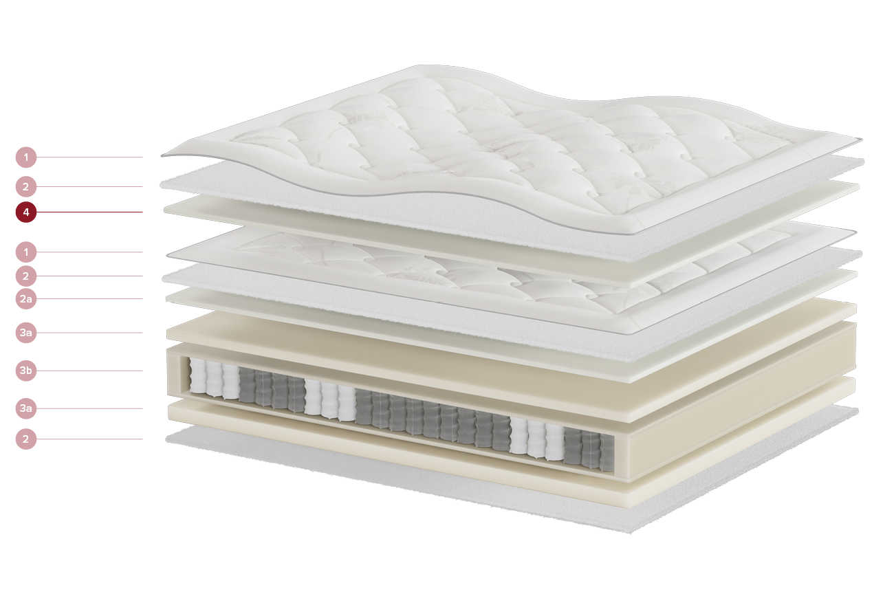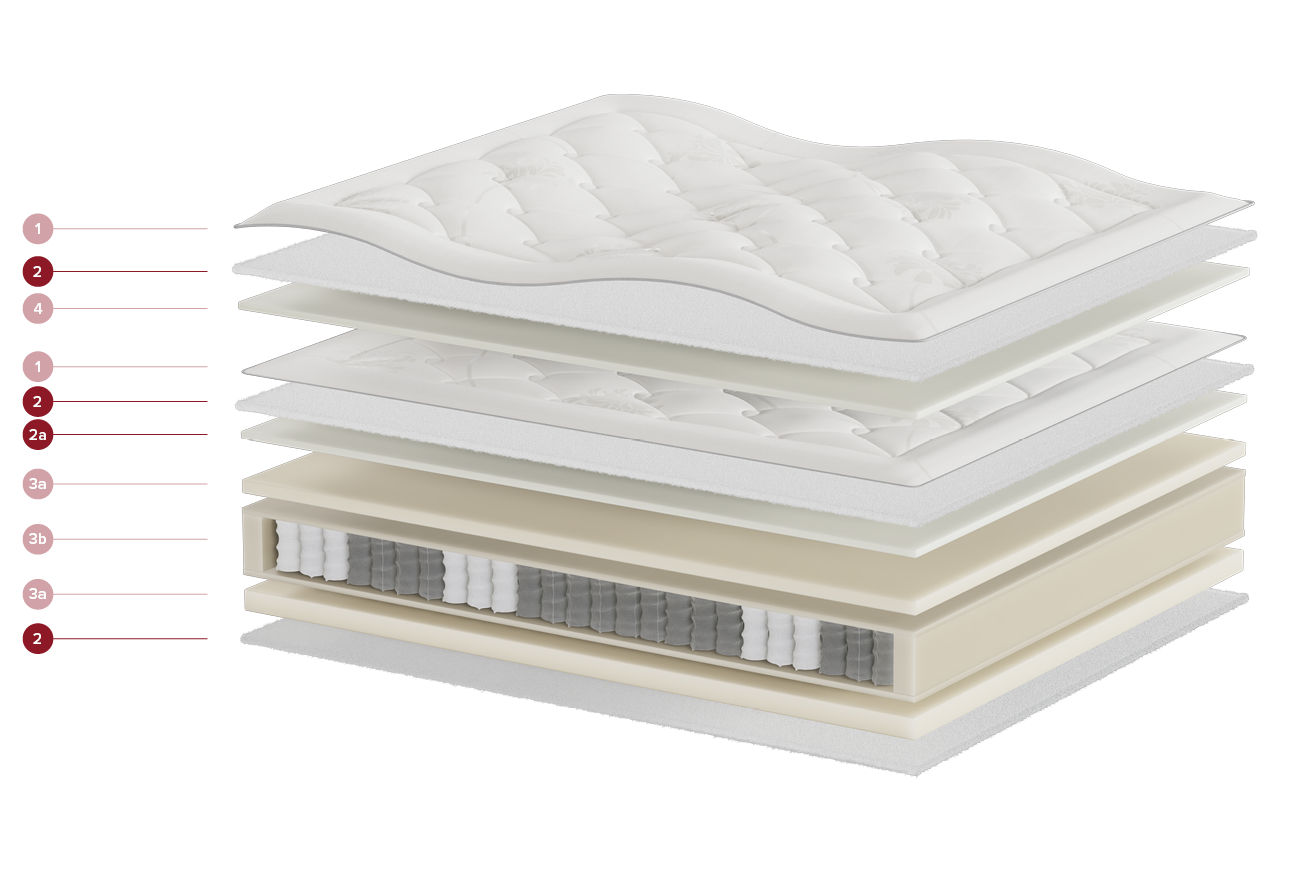 Flair nasce per offrire un’esperienza di riposo personalizzata e di alto livello. Il pillow top di nuova concezione garantisce una sensazione di morbidezza avvolgente, mentre la struttura interna assicura sostegno mirato e perfetta distribuzione del peso. L’eleganza delle finiture e la cura dei materiali rendono Flair la scelta ideale per chi desidera coniugare lusso, innovazione e benessere.